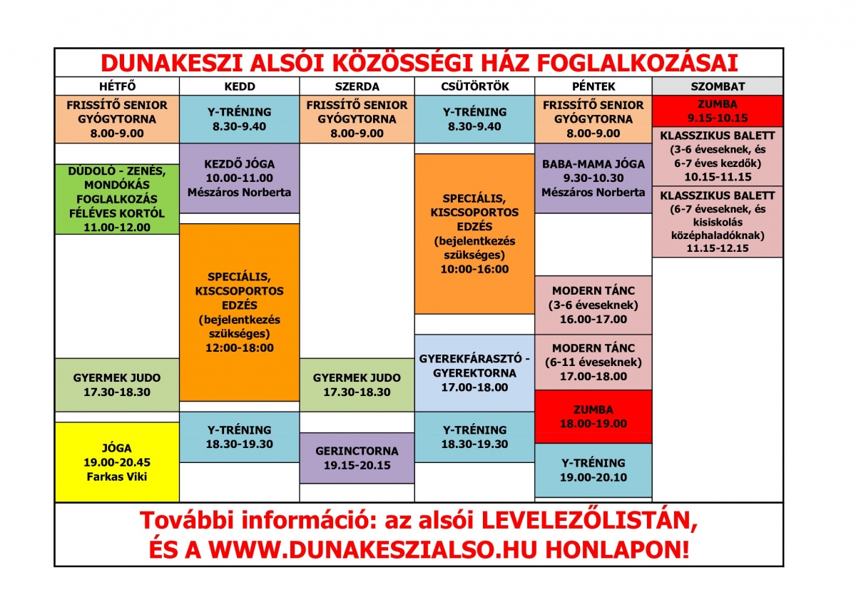Bővebb információk a honlapon találhatóak: http://dunakeszialso.hu/kozossegihaz