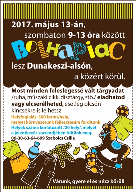 2017. MÁJUS 13. szombat BOLHAPIAC - ESŐ MIATT ELMARAD!